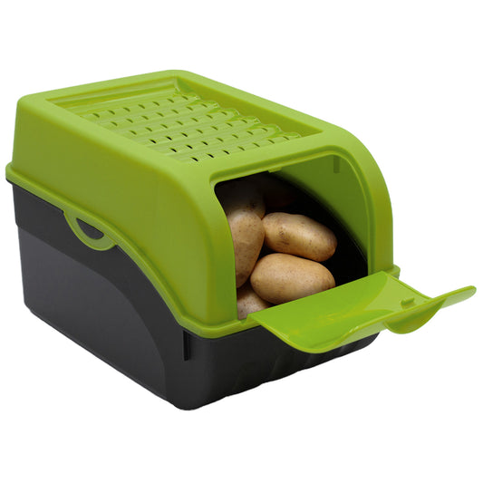 Kartoffelbox mit Deckel grün - Kartoffel Aufbewahrungsbox Gemüsebox mit Aufkleber