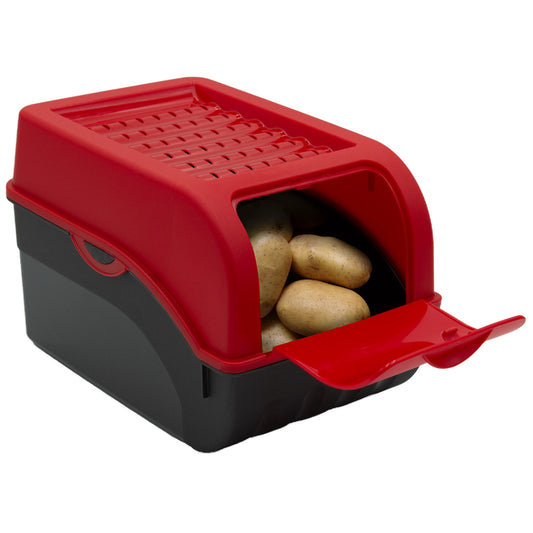 Kartoffelbox mit Deckel rot - Kartoffel Aufbewahrungsbox Gemüsebox mit Aufkleber