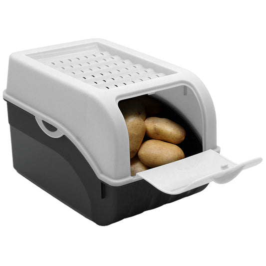 Kartoffelbox mit Deckel weiß - Kartoffel Aufbewahrungsbox Gemüsebox mit Aufkleber