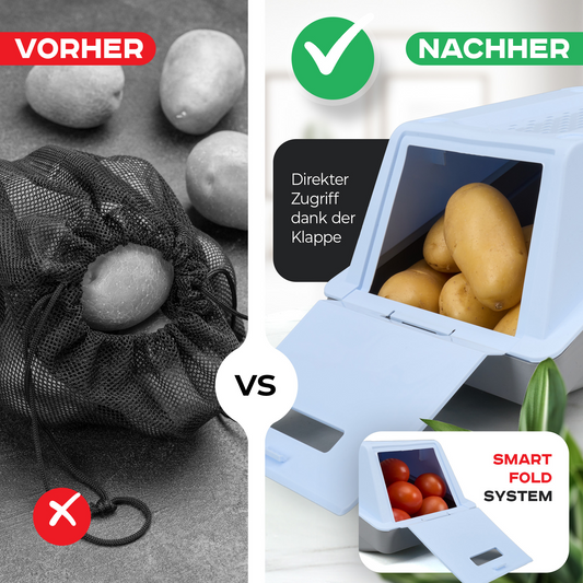 Stapelbare Gemüsebox - Kartoffel Aufbewahrungsbox mit EasyClick Technologie – inklusive Gemüseaufkleber