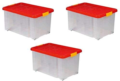 Mit dieser stabilen Aufbewahrungsbox können sie Gegenstände übersichtlich verstauen. Dank der Rollen unter der Kiste, können sie sie ganz leicht unter ein Bett, ein Tisch oder einen Schreibtisch stellen. Mit den Clipverschlüssen, lassen sich die Kisten sicher verschließen und können nicht versehentlich aufgehen.